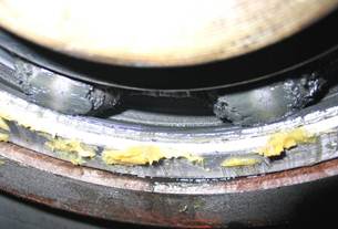 Осмотр внешних торцевых поверхностей колец подшипника позволяет подтвердить проворачивание колец или определить наличие контакта подшипника с рядом расположенной деталью (рисунок 5.42).