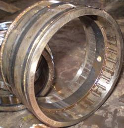 При предварительном осмотре подшипников шарниров установлено, что в подшипниках находится закоксовавшийся смазочный материал. После промывки осмотрены посадочные места подшипников. На наружных и внутренних кольцах следов проворота не обнаружено, на некоторых наружных кольцах присутствуют темные пятна фреттинг-коррозии (рисунок 11). Измерения посадочных поверхностей наружных колец подшипников в корпусных деталях указывают на то, что прельные отклонения от посадочных размеров составляют 0,02…0,08 мм.