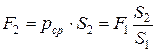заметил Паскаль, передается во все точки жидкости, в тот числе и на поверхность большого поршня, поэтому на большой поршень действует давление рср, а усилие, которое создает этот поршень