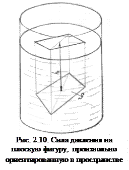 Для определения силы давления жидкости на плоскую стенку, произвольно ориентированную в жидкости (рис. 2.10), следует умножить значение площади стенки на гидростатическое давление в точке центра тяжести стенки.