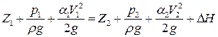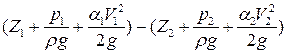 α ≈1,1; для ламинарных потоков (нефтепроводы, маслопроводы) обычно принимают α ≈ 2. С учетом неравномерности распределения скоростей, уравнение Бернулли для потока реальной жидкости можно записать