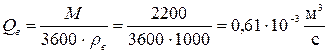 Определяем объемный расход каждой жидкости, протекающей по трубопроводам.