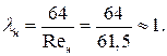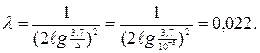 Воздух течет в турбулентном режиме в квадратичной зоне сопротивлений и поэтому коэффициент гидравлического сопротивления можно рассчитать по формуле Прандтля-Никурадзе или определить из графика Мурина.