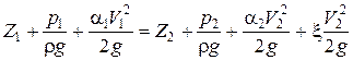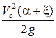 Для первого сечения Z1 = H, V1 = 0, для второго сечения Z2 = 0, V2 = Vc. Тогда уравнение Бернулли приобретает вид