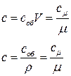 Так как количество вещества может быть задано в массовых, объёмных или мольных единицах, различают средние массовую С(кДж/кг*град), объемную Соб(кДж/м3*град), и мольную Сµ(кДж/Кмоль*град) теплоёмкость.