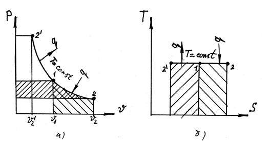 Рис. 7.3 а) рабочая диаграмма изотермического процесса;