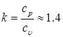 – показатель адиабаты, равный отношению изобарной к изохорной теплоемкости