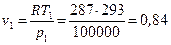Удельный объем рабочего тела в точке 1 из p1v1 = RT1