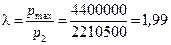 Определяем давление в точке p2 = p1·ek = 88000·101,4 = 2210500 Па.
