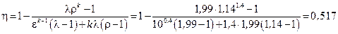 Известно, что p1 = 88000 Па, t1 = 67°C, степень сжатия e = 10; количество подведенной теплоты q1 = 840 кДж/кг, pмакс = 4400000 Па, рабочее тело воздух, k = 1,4. необходимо определить термический КПД цикла и соотношение