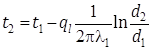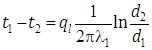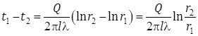 Подставляя значения переменных на границах стенки: при r = r1, t = t1 и при r = r2, t = t2 получаем два уравнения и вычитая почленно из первого второе получим