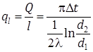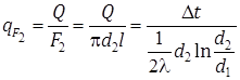 Количество тепла, проходящее через, стенку может быть отнесено к единице длины трубы, либо к единице площади внутренней или внешней поверхности трубы. В этом случае расчетные формулы примут вид: