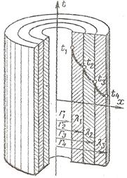 Рис. 12.5. Трёхслойная цилиндрическая стенка