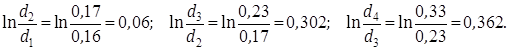 Задачу можно решить по традиционной и по упрощенной методикам. Для решения задачи традиционным способом определяем величины натуральных логарифмов