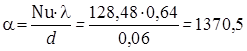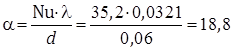 Отсюда определяем значение среднего коэффициента теплоотдачи