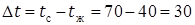 Dt — разность между температурой теплообменной поверхности tс = 70 °C и температурой жидкости tж = 40 °C.