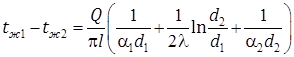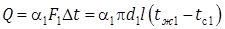 Так как тепловой поток стационарный, то от горячего теплоносителя к поверхности к единице длины трубы пойдет тепловой поток