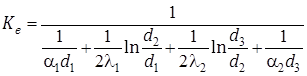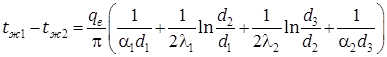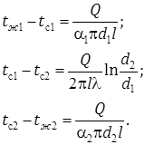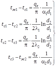 Значение неизвестных температур стенок tс1, tс2 и tс3 можно найти из уравнений частных температурных напоров