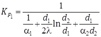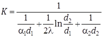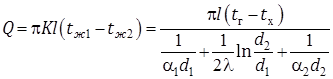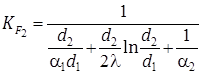 Однако при расчётах полученное уравнение никогда не используют. Коэффициент теплопередачи относят либо к одному метру длины трубы, либо к внутренней, либо к внешней поверхности. И тогда расчётные формулы приобретают вид: