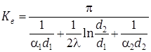 Здесь Ke — коэффициент теплопередачи 1 п.м. трубы.
