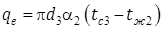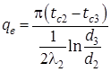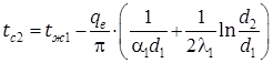 Известны диаметры обоих слоев d1, d2 и d3. Коэффициенты теплопроводности слоев постоянны и равны l1 и l2, коэффициенты теплоотдачи со стороны горячей и холодной сред a1 и a2. Неизвестны температуры поверхностей, контактирующих с горячей и холодной средами tс1 и tс3, а также температура соприкосновения цилиндрических слоев tс2.