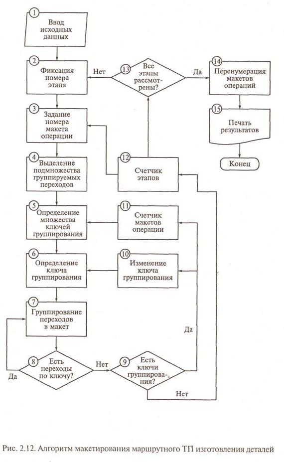 На рис. 2.12 показан алгоритм макетирования маршрутного ТП при его синтезе. Совокупность необходимых исходных данных см. рис. 2.11.