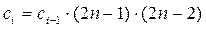Рассмотрим подробнее рекуррентное выражение для переменной с. Если обратиться к таблице 6, то можно заметить, что последующее значение переменной с получается домножением предыдущего значения на два числа. При n = 3 необходимо домножить на 4 и 5, при n = 4 необходимо домножить на 6 и 7.
