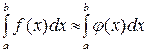 Обычный прием механической квадратуры заключается в том, что данную функцию f(x)на рассматриваемом отрезке [a, b] заменяют интерполирующей или другой аппроксимирующей функцией φ (x) простого вида (например, полиномом), а затем приближенно полагают