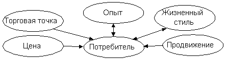1) Побудительные факторы маркетинга: Товар, цена, методы распространения, стимулирования сбыта;