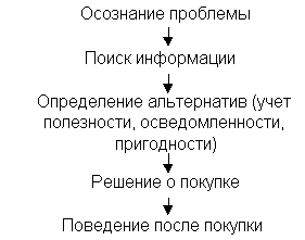 В общем виде процесс принятия решения о покупке можно представить пятиступенчатой моделью: