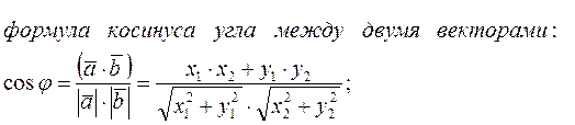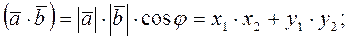 признак перпендикулярности: x1∙x2 + y1∙y2 = 0;