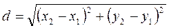 расстояние между двумя точками M1(x1 ; y1) и M2(x2 ; y2)
