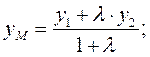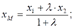 координаты середины отрезка (M1M = MM2, т.е. λ = 1)