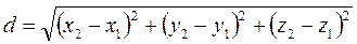 расстояние между двумя точками M1(x1; y1; z1) и M2(x2; y2; z2)