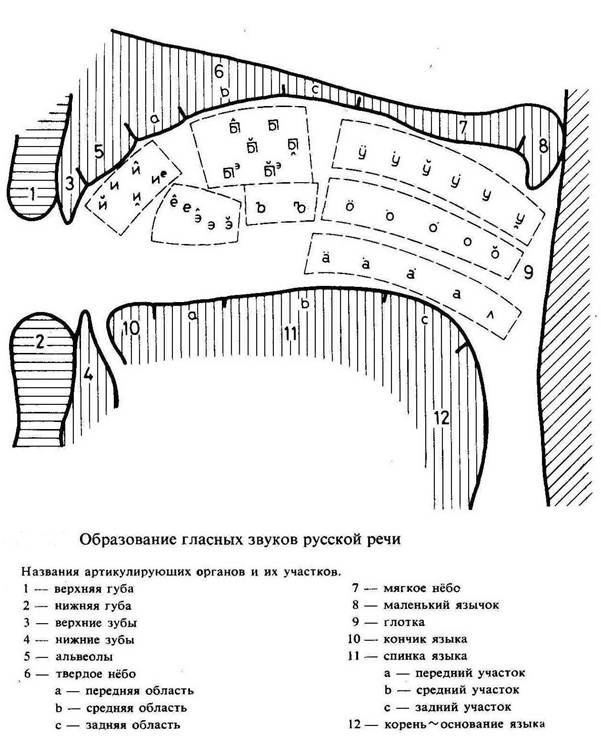 Пользуясь работой: К.Болл а. Атлас звуков русской речи, Будапешт: Издательство Академии наук Венгрии, 1981, нетрудно установить, что по первой форманте (вторая цифра в графе «форманты в условных единицах», т.е. тональные интервалы) фонемы образуют с основным тоном голоса, принятым за единицу: «О, Э, У, Ы, И» – консонанс, «А» – диссонанс.[1] Кстати, рисунок гортани на рисунке выше приводится по тому же первоисточнику.