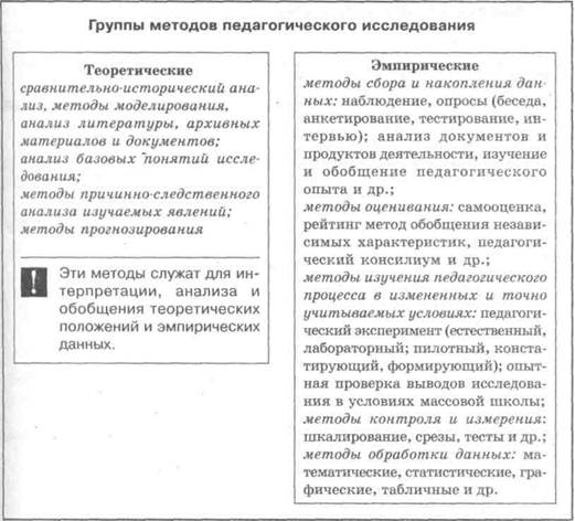 Методы педагогического исследования — способы и приемы познания объективных закономерностей обучения, воспитания и развития.