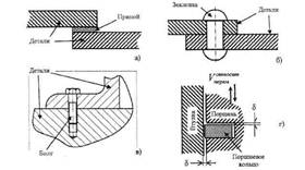 . Примером неподвижных сопряжений являются: а) крепление гребного винта на конце гребного вала, б) паяные, сварные соединения и др. (рис. 1.2). В подавляющем большинстве неподвижных соединений зазор отсутствует: