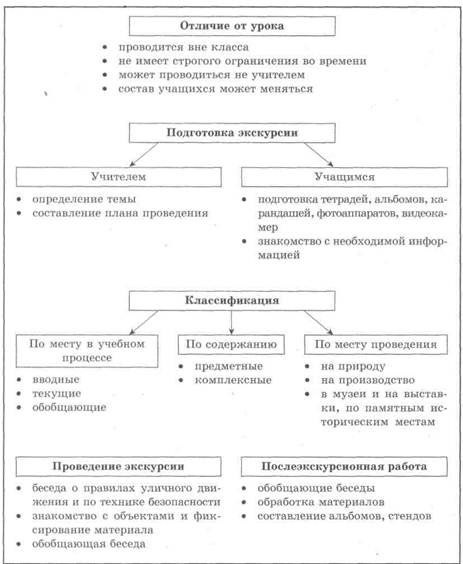 Учебные экскурсии — форма организации обучения, позволяющая проводить наблюдения, а также изучение различных предметов, явлений и процессов в естественных условиях.
