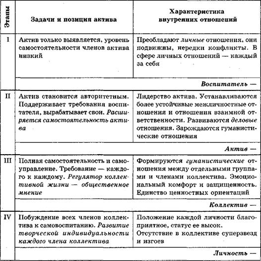 | Коллективные связи проявляются очень слабо или совсем отсутствуют. Могут быть отдельные личные контакты | Активно узнавать детей, выявлять актив | Требования — прямые, категоричные, ясные и решительные |
