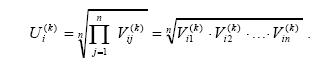 На следующем этапе вычисляются собственные векторы альтернатив по всех критериям. Для каждой i-й альтернативы по к-му критерию вычисляем элемент вектора Ui k) который равен среднегеометрическому показателей матрицы сравнения для этой альтернативы (строки матрицы):