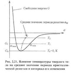 . В то же время среднее значение периода a1ср, фиксируемое, например, при рентгеноструктурном анализе, оказывается больше а0. Это связано с асимметричностью кривой изменения свободной энергии — силы отталкивания при перекрытии электронных оболочек атомов оказываются значительно больше совместного действия сил кулоновского и гравитационного взаимодействия (см. п. 2.2.1).