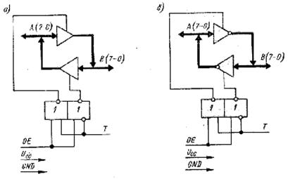 При H-уровне сигнала на входе Т и L- уровне сигнала на входе ОЕ информация с выводов А (7- 0) передается на выводы В (7- 0).