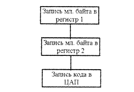 | MVI А, 05Н OUT 83H | : запись в ЦАП из : регистра 1, 2 одновременно |