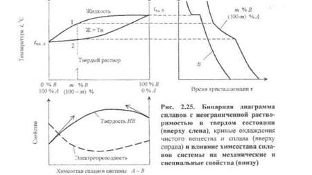 Важнейшим качеством диаграмм состояния является тесная корреляция между составом и свойствами сплавов системы (рис. 2.24, внизу), что дает возможность прогнозировать поведение того или иного сплава с учетом механизма явления.
