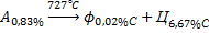 Аустенитно-перлитное превращение происходит при охлаждении А, содержащего 0,83 % С, до температуры 727 °С: в нем наблюдается перераспределение углерода и он распадается на феррит и цементит: