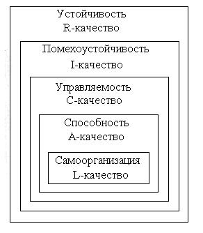 На рис. 1.2 схематически показаны усложняющиеся качества систем. Перечисленные в порядке усложнения R, I, С, A, L – качества условно изображены в виде системы вложенных прямоугольников. Данное - графическое представление рассматриваемых качеств систем логически означает следующее: система, обладающая данным качеством (например, С — качеством), имеет и все другие более простые качества (I и R — качества), но не имеет качеств более высокого порядка (А и L — качеств).