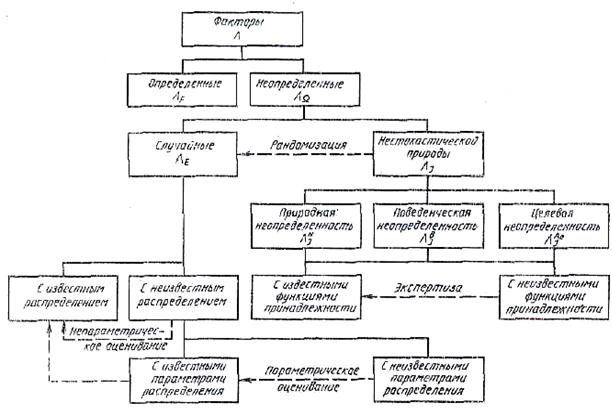При исследовании систем факторы отображают в виде переменных (числовых и нечисловых). Классификация факторов приведена на рис. 1.4. С точки зрения информированности исследователя об этих переменных факторы делят на определенные