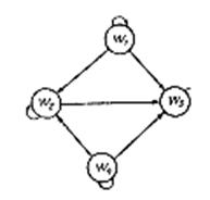 Дадим характеристику свойств бинарного отношения на примере рис. 2.2. Введенное отношение рефлексивно. Признаком этого является наличие петель на графе, единиц — на диагонали матрицы смежности. Отношение R несвязно (отсутствует стрелка между W1 и W4 на графе), транзитивно.