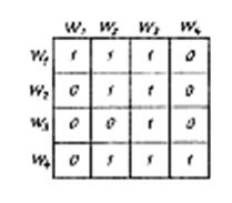Пример 2.4. Построим транзитивное замыкание для примера 1, когда при попарном сравнении установлено, что W1 не менее предпочтительнее W2, a W2 не менее предпочтительнее W3. Указанное отношение несвязно и нетранзитивно. Матрица смежности этого отношения выглядит следующим образом: