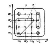 Пример 2.3. Пусть R выражает мнение ЛПР о том, что частный показатель Wi не менее предпочтителен, чем показатель Wj, для векторного показателя W=(W1, W2, W3, W4), где W1 — покупательная способность; W2 — себестоимость; W3 — затраты; W4 — время на реализацию стратегии. ЛПР, например, считает, что увеличение покупательной способности не менее предпочтительнее снижения себестоимости и затрат, а снижение себестоимости, в свою очередь, не менее предпочтительнее снижения затрат (при условии, что затраты не превышают допустимой нормы); фактор времени при этом не менее важнее снижения себестоимости и затрат. В этом случае отношение R можно записать: R = {(Wi, Wj)\(W1, W1), (W1, W2), (W1 W3,), (W2, W2), (W2, W3), (W3, W3), (W4, W2), (W4, W3) (W4, W4)} — как прямое перечисление показателей, связанных введенным отношением; R= {(Wi, Wj)│Wi, Wj